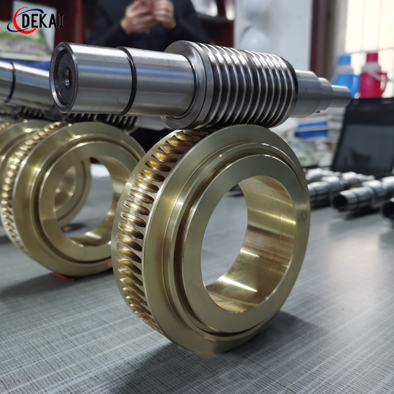 分度精度高,側(cè)隙可調(diào)整至0.01~0.03Mmm;齒面接觸穩(wěn),不會改變中心距。調(diào)整標準,方便可靠。裝配靈活,裝配時,用調(diào)整環(huán)來獲得合適的嚙合側(cè)隙。使用中如果因為磨損導(dǎo)致傳動間隙增大,只要調(diào)整一下蝸桿的軸向位置,可以使蝸桿蝸輪傳動副恢復(fù)到原來的精度,不需要更換新的蝸桿,蝸輪,比較實用。蝸桿材質(zhì)采用40Cr,42CrMo、38CrMoAl合金鋼。蝸桿采用錫青銅ZCuSn10Pb1離心澆鑄,具有高強度耐磨性。
