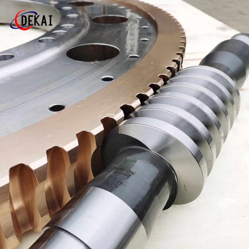 蝸輪磨損。蝸輪一般采納錫青銅,配對(duì)的蝸桿材料用45鋼淬硬至HRC4555,或40Cr淬硬HRC5055后經(jīng)蝸桿磨床磨削至粗糙度Ra0.8m。減速機(jī)正常運(yùn)行時(shí)磨損很慢,某些減速機(jī)可以使用10年以上。如果磨損速度較快,就要合計(jì)選型是否正確,是否超負(fù)荷運(yùn)行,以及蝸輪蝸桿的材質(zhì)、裝配質(zhì)量或使用環(huán)境等原因。解決方法:潤(rùn)滑油和添加劑的選用。蝸齒減速機(jī)一般選用220#齒輪油,對(duì)重負(fù)荷、啟動(dòng)頻繁、使用環(huán)境較差的減速機(jī),可選用一些潤(rùn)滑油添加劑,使減速機(jī)在停止運(yùn)轉(zhuǎn)時(shí)齒輪油依舊附著在齒輪表面,形成保護(hù)膜,防止重負(fù)荷、低速、高轉(zhuǎn)矩和啟動(dòng)時(shí)金屬間的直接接觸。添加劑中含有密封圈調(diào)節(jié)劑和抗漏劑,使密封圈堅(jiān)持柔軟和彈性,有效減少潤(rùn)滑油漏。