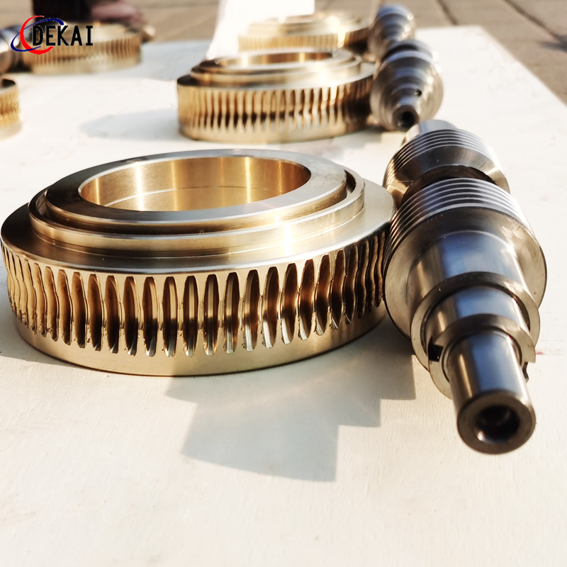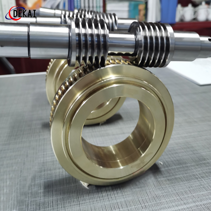 分度精度高,側(cè)隙可調(diào)整至0.01~0.03Mmm;齒面接觸穩(wěn),不會改變中心距。調(diào)整標準,方便可靠。裝配靈活,裝配時,用調(diào)整環(huán)來獲得合適的嚙合側(cè)隙。使用中如果因為磨損導(dǎo)致傳動間隙增大,只要調(diào)整一下蝸桿的軸向位置,可以使蝸桿蝸輪傳動副恢復(fù)到原來的精度,不需要更換新的蝸桿,蝸輪,比較實用。蝸桿材質(zhì)采用40Cr,42CrMo、38CrMoAl合金鋼。蝸桿采用錫青銅ZCuSn10Pb1離心澆鑄,具有高強度耐磨性。