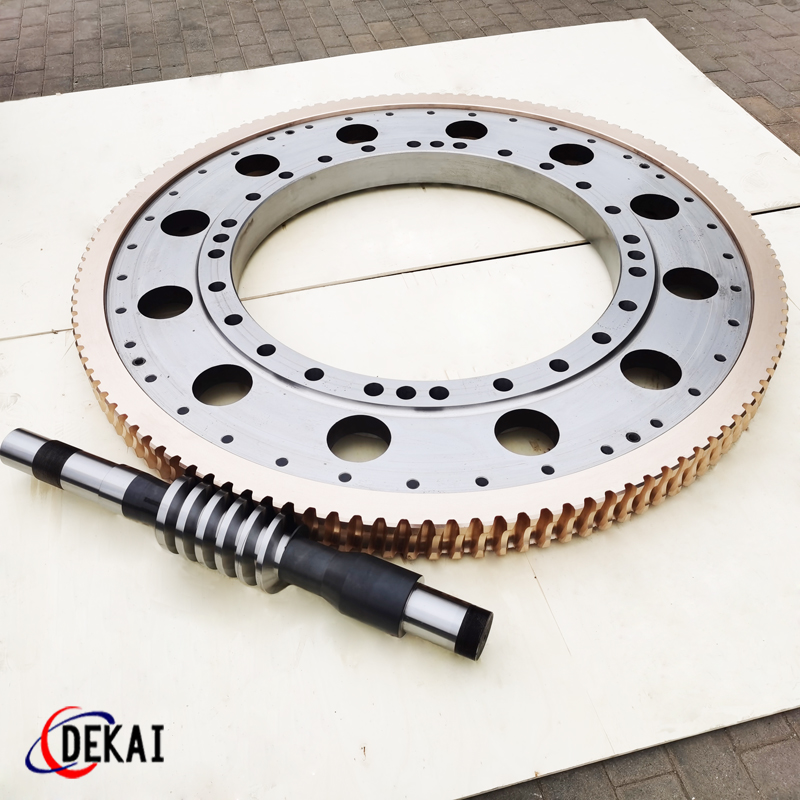 德州德凱減速傳動機械有限公司采用雙蝸桿對消隙原理開發(fā)生產(chǎn)的精密蝸輪蝸桿副,主要用于大型機床工作臺的驅(qū)動,高精密分割器等無間隙圓周運動精確定位場合。該蝸輪副中心距最大可做到2000mm,單節(jié)速比可做到1-365同時不產(chǎn)生回程間隙。